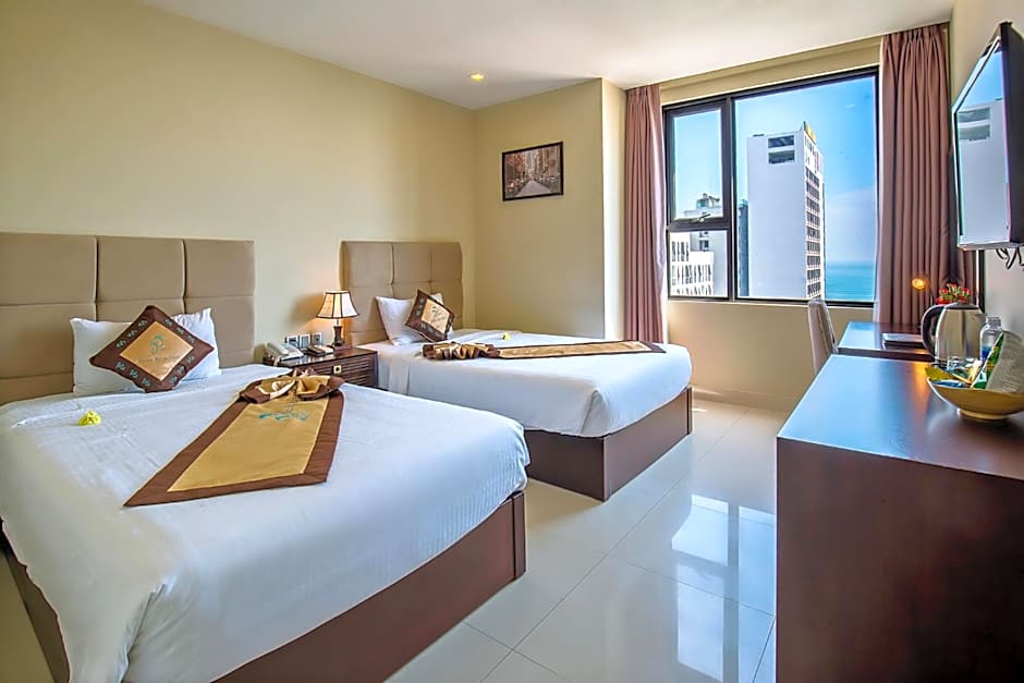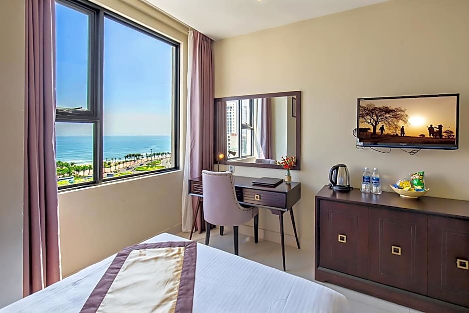 This air-conditioned room features street views OR partial sea views, electric kettle and mini-bar.